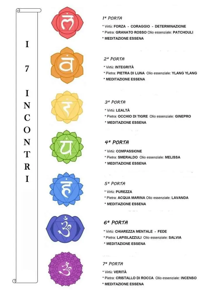 - E’ previsto l’utilizzo di oli essenziali e pietre che corrispondono alle virtù e ai chakra.